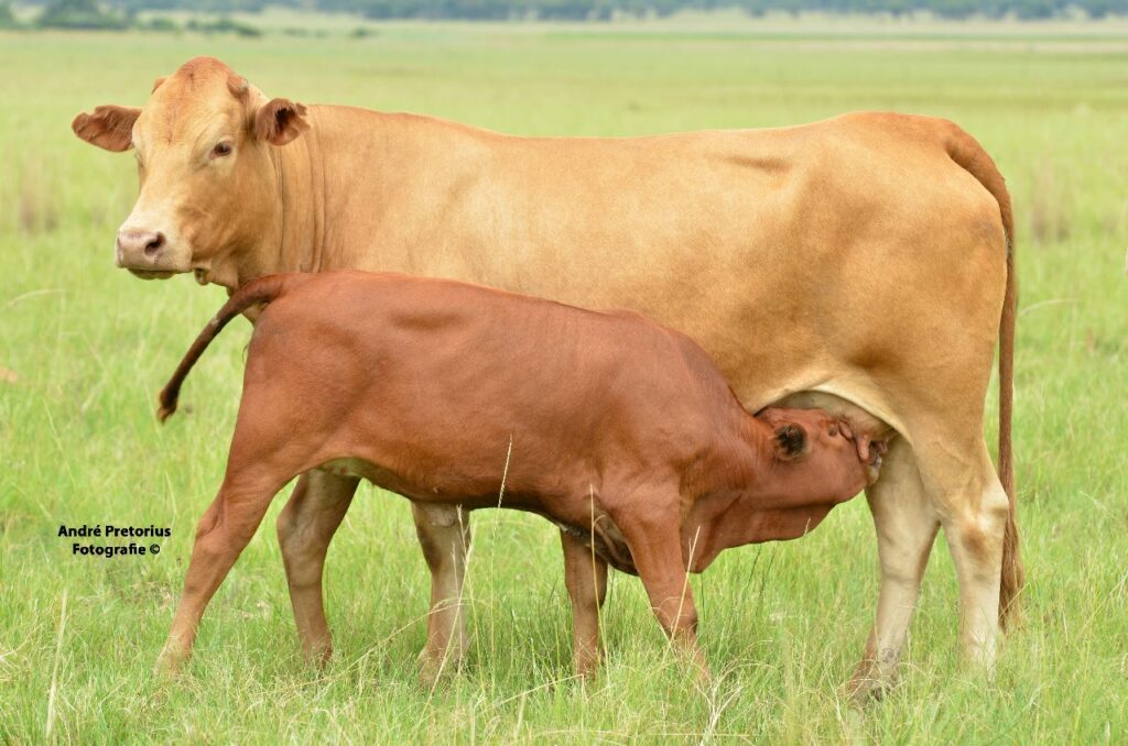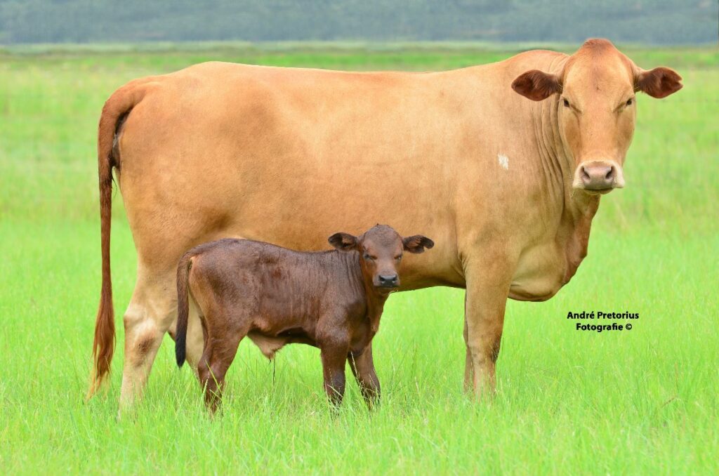 The Tuli is indigenous to Southern Africa with hardiness and adaptability bred into it through a process of natural selection over a period of at least two thousand years. In recent times attributes of economic value have been the aim of scientific selection and have given us the modern Tuli. In female animals the accent has been on fertility, milk production and low calf mortality while in bulls it has been growth, feed conversion and carcass quality. Great care has always been taken not to compromise the natural hardiness and adaptability of the breed. The Tuli developed in relative isolation and has a unique genetic make up which makes it particularly successful in cross breeding programs – not only is a high degree of hybrid vigour achieved but a large percentage of polled calves as well. Tuli steers and Tuli-cross calves finish faster off the veld than many other breeds.